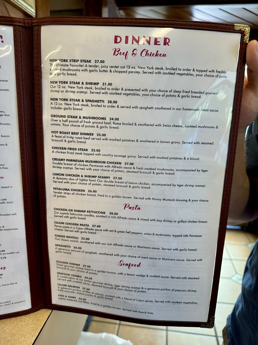 One of the primary highlights is their diverse range of burgers, featuring crowd favorites like the Cheese Burger and the indulgent Swiss Mushroom Burger. For those looking for something more substantial, the New York Steak & Shrimp and Hot Roast Beef Dinner present a satisfying option for dinner.